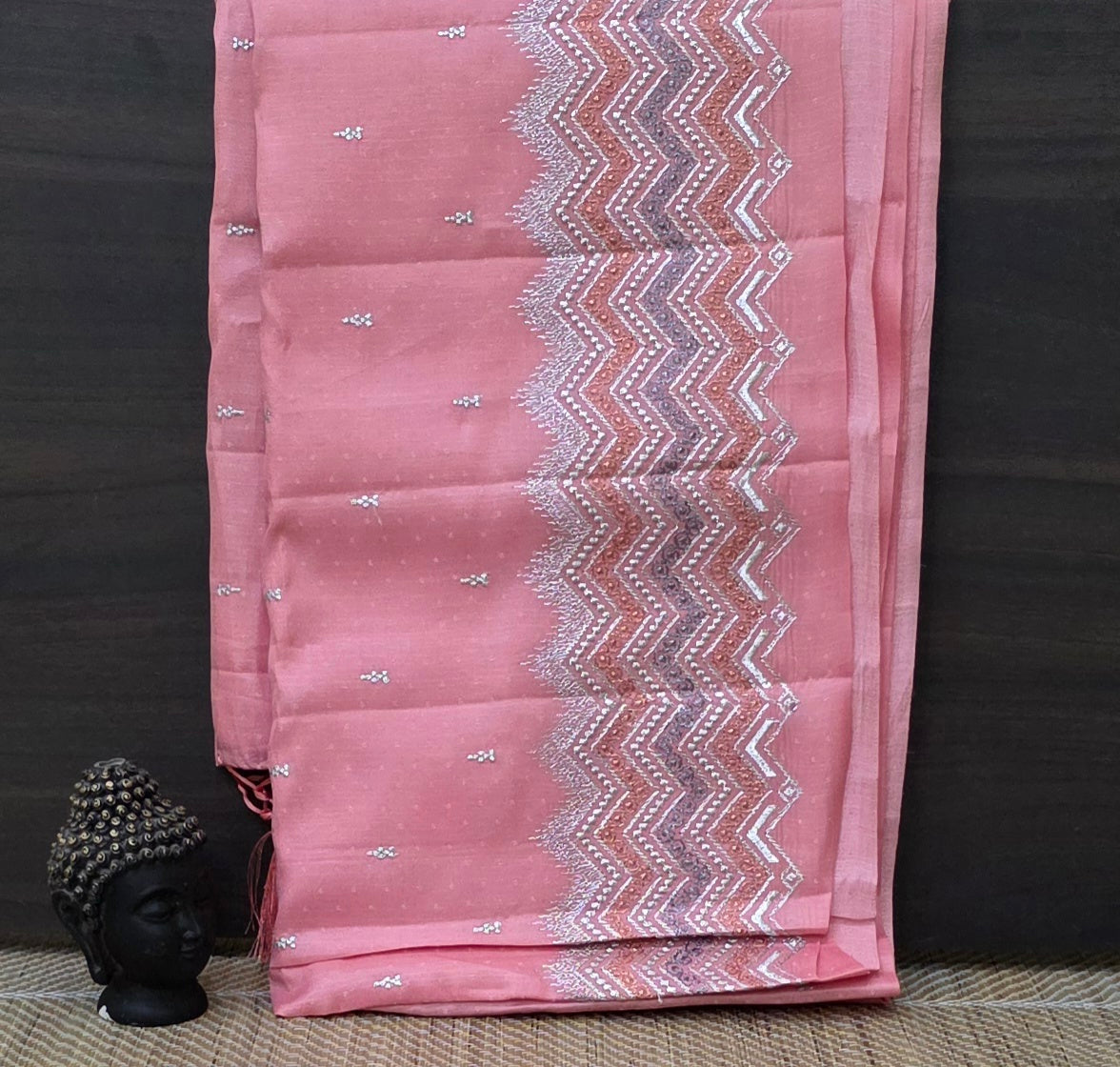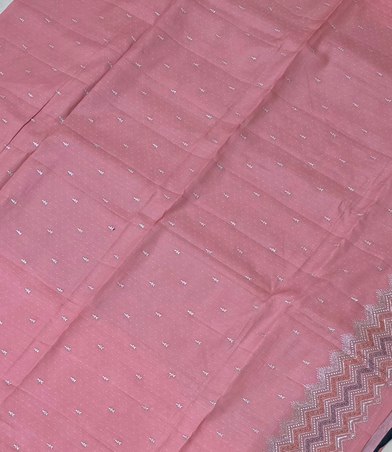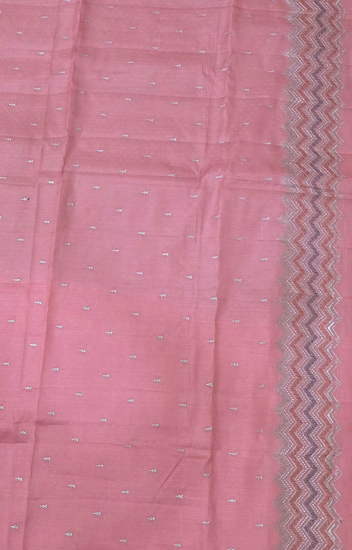 About Saree - Butter silk is a lightweight, ultra-soft fabric that drapes beautifully and feels smooth against the skin. The saree features elegant zari woven border and small motifs all over the body . The subtle dotted texture in the background adds depth, while the overall design maintains a minimal and graceful aesthetic. It comes with a contrast blouse.