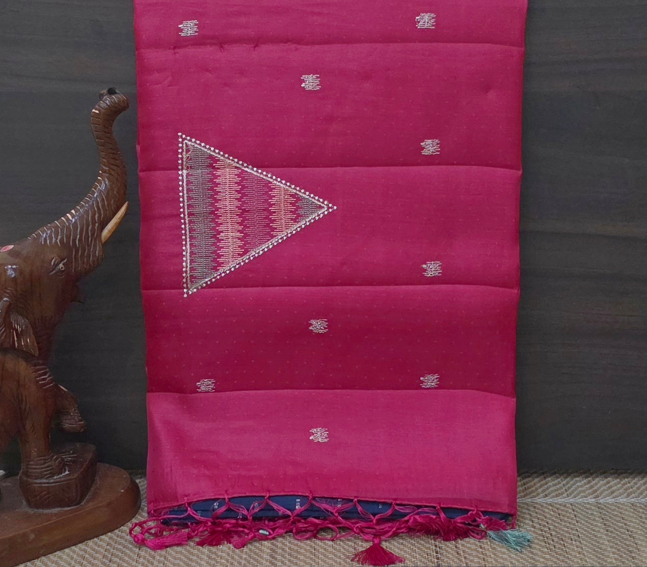 About Saree - Butter silk is a lightweight, ultra-soft fabric that drapes beautifully and feels smooth against the skin. The saree features elegant motifs . The subtle dotted texture in the background adds depth, while the overall design maintains a minimal and graceful aesthetic. It comes with a contrast blouse.