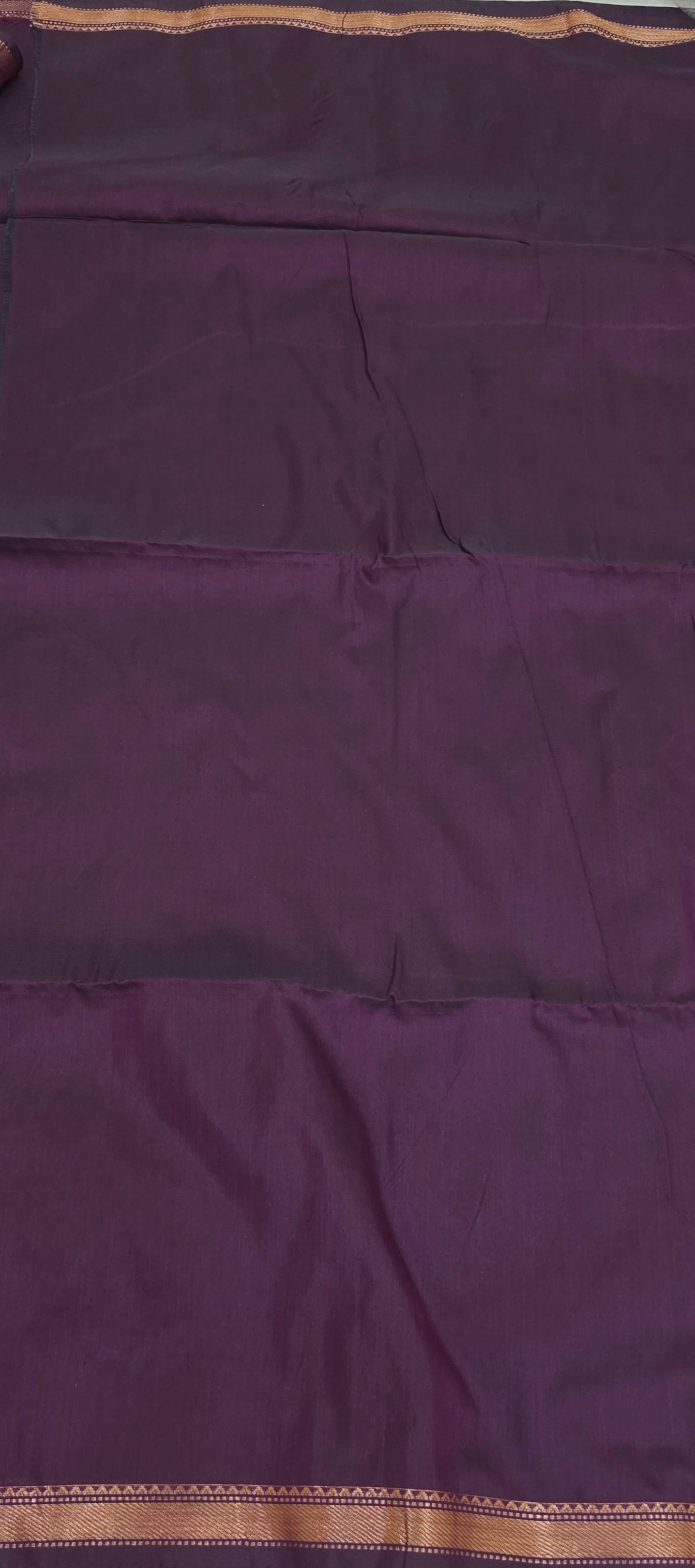 About Saree - This soft cotton saree features fine zari lines running across the body, lending it a subtle, elegant texture. The pallu is richly woven with traditional floral motifs and intricate patterns, complemented by tassels at the edge. It comes with a plain running blouse with border.